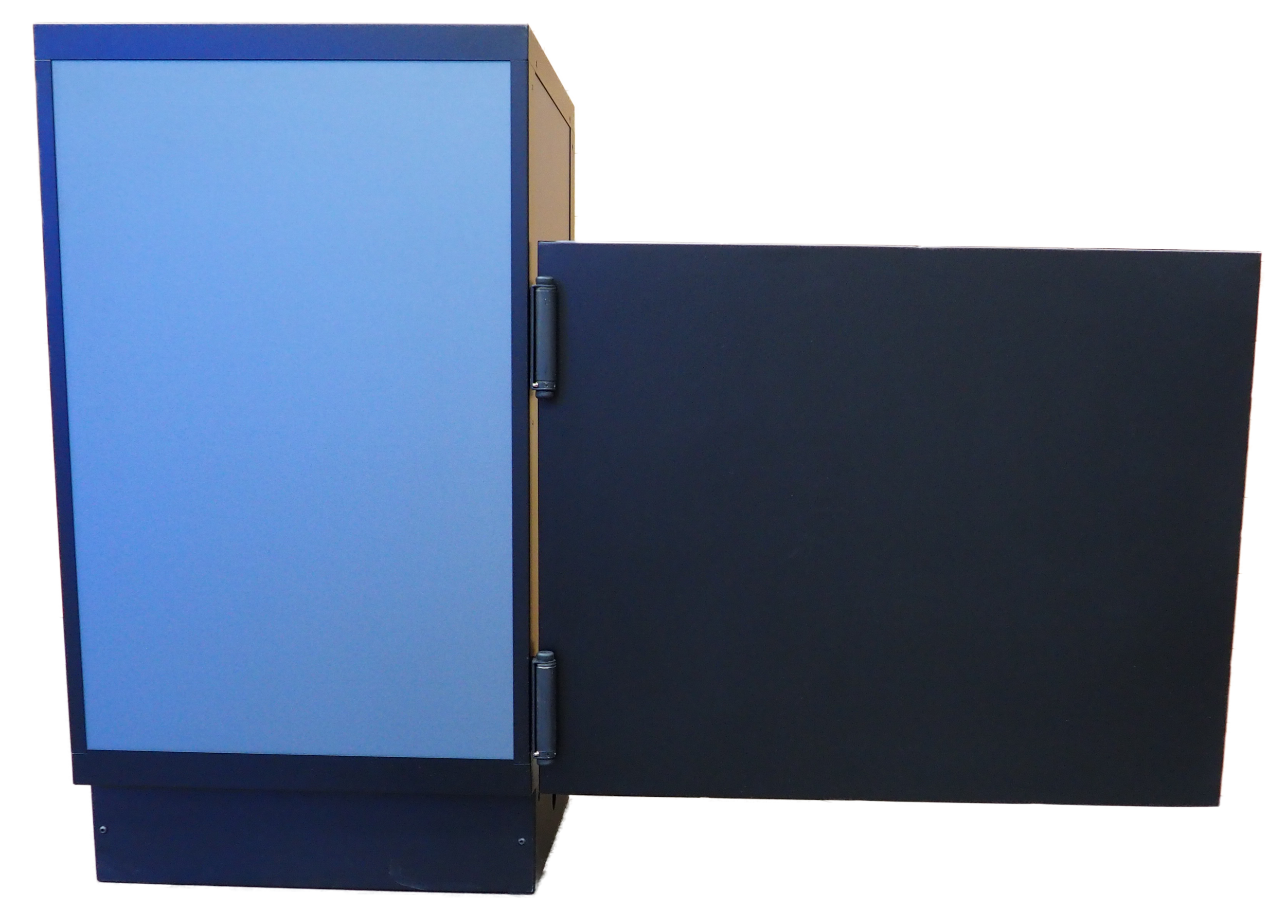 Our 36”x36” 2-way swing gate utilizes two 5” mortise-mounted hinges with adjustable resistance. The door is constructed with powder coated steel panels designed for heavy use. The gate can be attached to any of our displays, including our HS-20 Fortress Display, fillers, and customer service desks. Installation must occur prior to shipping.